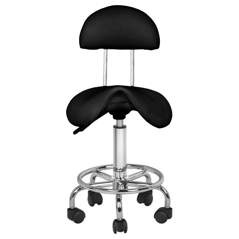 Ένα άνετο, σταθερό σκαμπό  με πλάτη, με κάθισμα με προφίλ, σε βάση πέντε αστέρων με πλαστικούς τροχούς. Διατίθεται σε μαύρο χρώμα, ένα απαραίτητο έπιπλο σε ένα σαλόνι ομορφιάς.