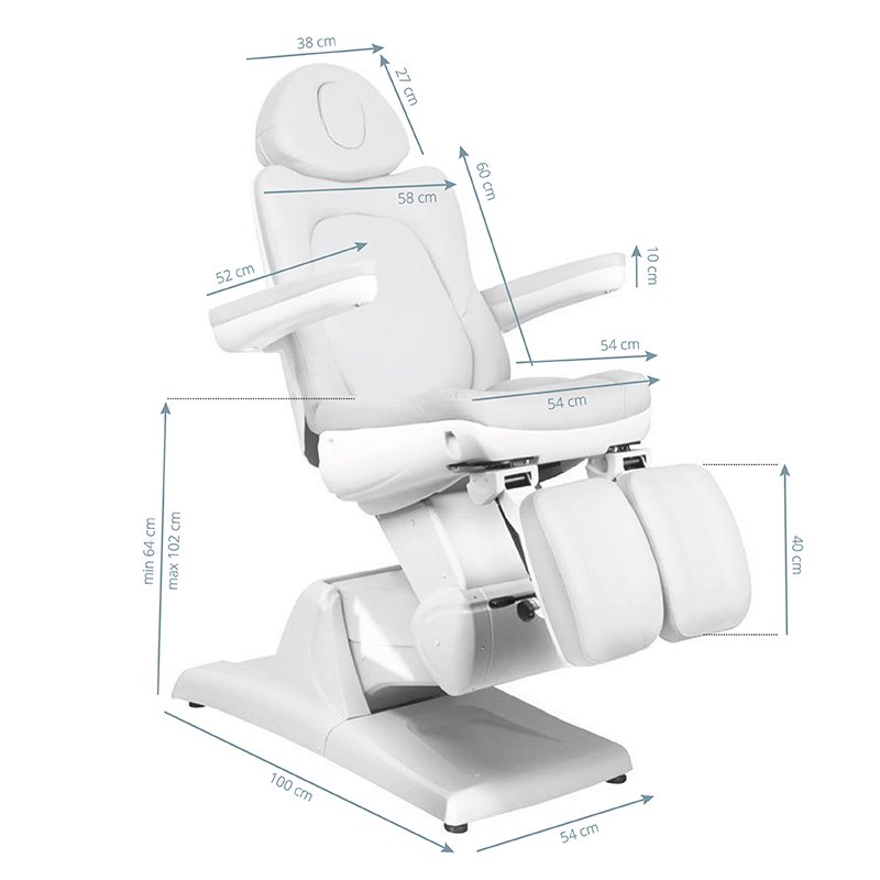 Σύγχρονη ηλεκτρικά ρυθμιζόμενη καρέκλα αισθητικής, που εξασφαλίζει άνεση κατά τη διάρκεια της θεραπείας όχι μόνο για τους ασθενείς αλλά και για τα άτομα που εκτελούν τη διαδικασία.