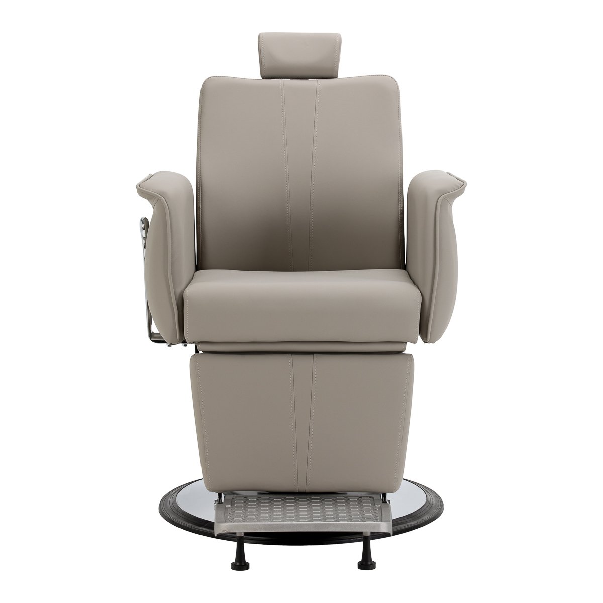 Μια σταθερή, στρογγυλή βάση με μεταλλικό φινίρισμα εξασφαλίζει αξιόπιστη στήριξη και ασφάλεια κατά τη χρήση . Το κάθισμα, η πλάτη και το υποπόδιο είναι γεμισμένα με αφρό ανθεκτικό στην παραμόρφωση και επενδυμένα με γκρι, ευχάριστο στην αφή συνθετικό δέρμα, εξασφαλίζοντας ανθεκτικότητα και υψηλή άνεση κατά τη χρήση . Τα υλικά που χρησιμοποιούνται είναι ανθεκτικά στην υγρασία και εύκολα στο καθάρισμα , καθιστώντας την καρέκλα ιδανική για καθημερινή χρήση. Τα απαλά χρώματα και το κλασικό σχήμα της επιτρέπουν να συνδυάζεται με τη διακόσμηση των σύγχρονων και παραδοσιακών κουρείων .