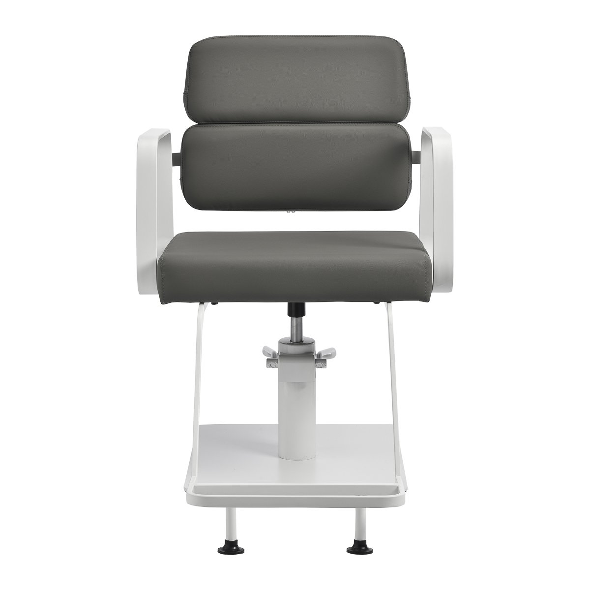 Η γέμιση με ανθεκτικό, ανθεκτικό στις παραμορφώσεις αφρό και η ταπετσαρία από ευχάριστο στην αφή συνθετικό δέρμα εξασφαλίζουν την ανθεκτικότητα του επίπλου και την άνετη χρήση του για μεγάλο χρονικό διάστημα. Επίσης, καθιστά τον εξοπλισμό ανθεκτικό στην υγρασία, ανθεκτικό και εύκολο στον καθαρισμό . Η γκρι επένδυση του προσδίδει έναν μοναδικό χαρακτήρα. Ο εξοπλισμός διακρίνεται για τον μοντέρνο σχεδιασμό του , που κάνει την καρέκλα να φαίνεται υπέροχη σε πολλά επαγγελματικά σαλόνια.