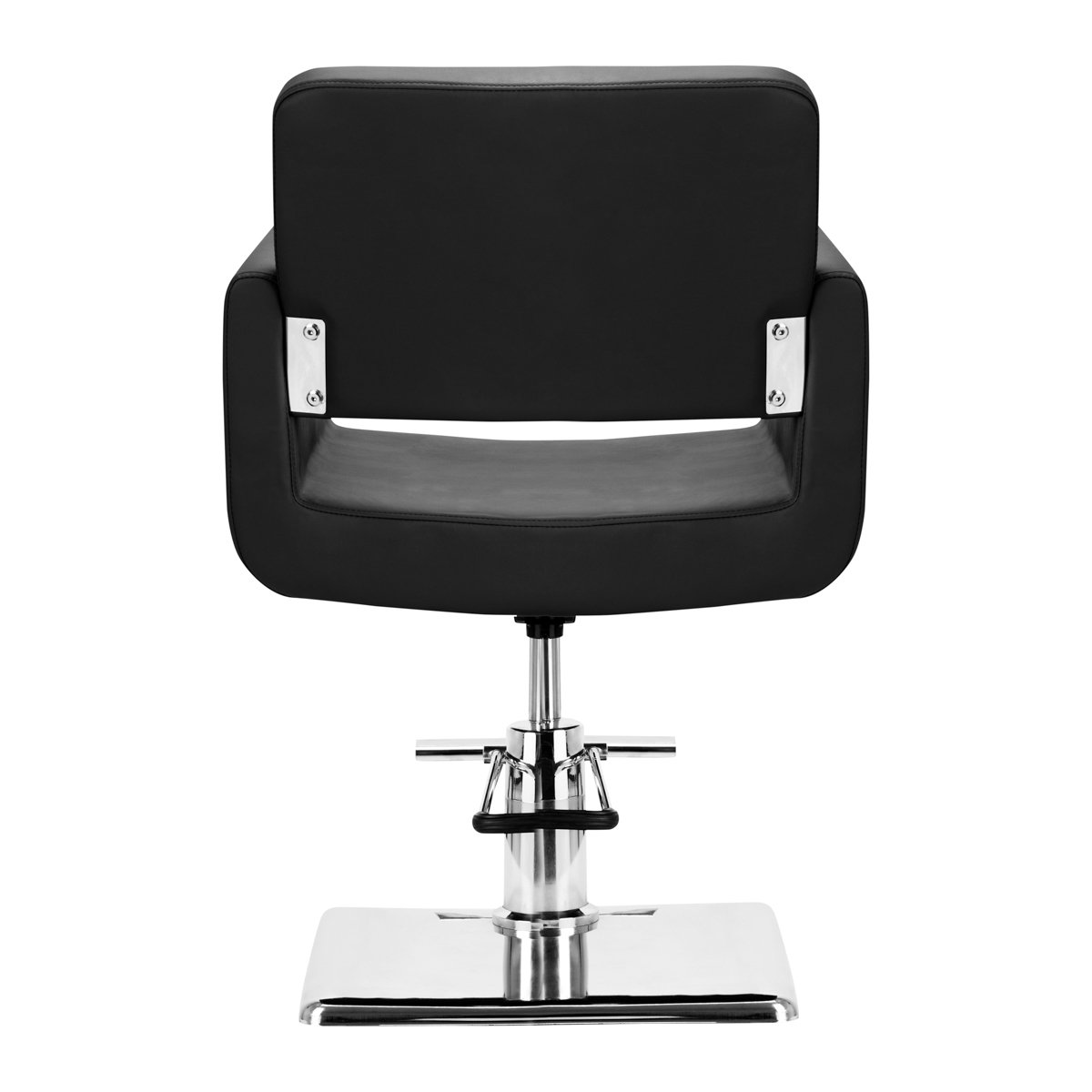 Η συμπαγής, τετράγωνη βάση εξασφαλίζει σταθερότητα κατά τη χρήση, ενώ η γυαλισμένη, λεία επιφάνειά της προσδίδει μια κομψή εμφάνιση . Το κάθισμα, γεμάτο με ανθεκτικό, ανθεκτικό στην παραμόρφωση αφρό και επενδυμένο με ευχάριστο στην αφή συνθετικό δέρμα, είναι ανθεκτικό, ανθεκτικό στην υγρασία και εύκολο στο καθάρισμα . Το κλασικό μαύρο χρώμα τονίζει τον διαχρονικό σχεδιασμό , ο οποίος ταιριάζει αρμονικά τόσο στους μοντέρνους όσο και στους παραδοσιακούς εσωτερικούς χώρους των κομμωτηρίων.