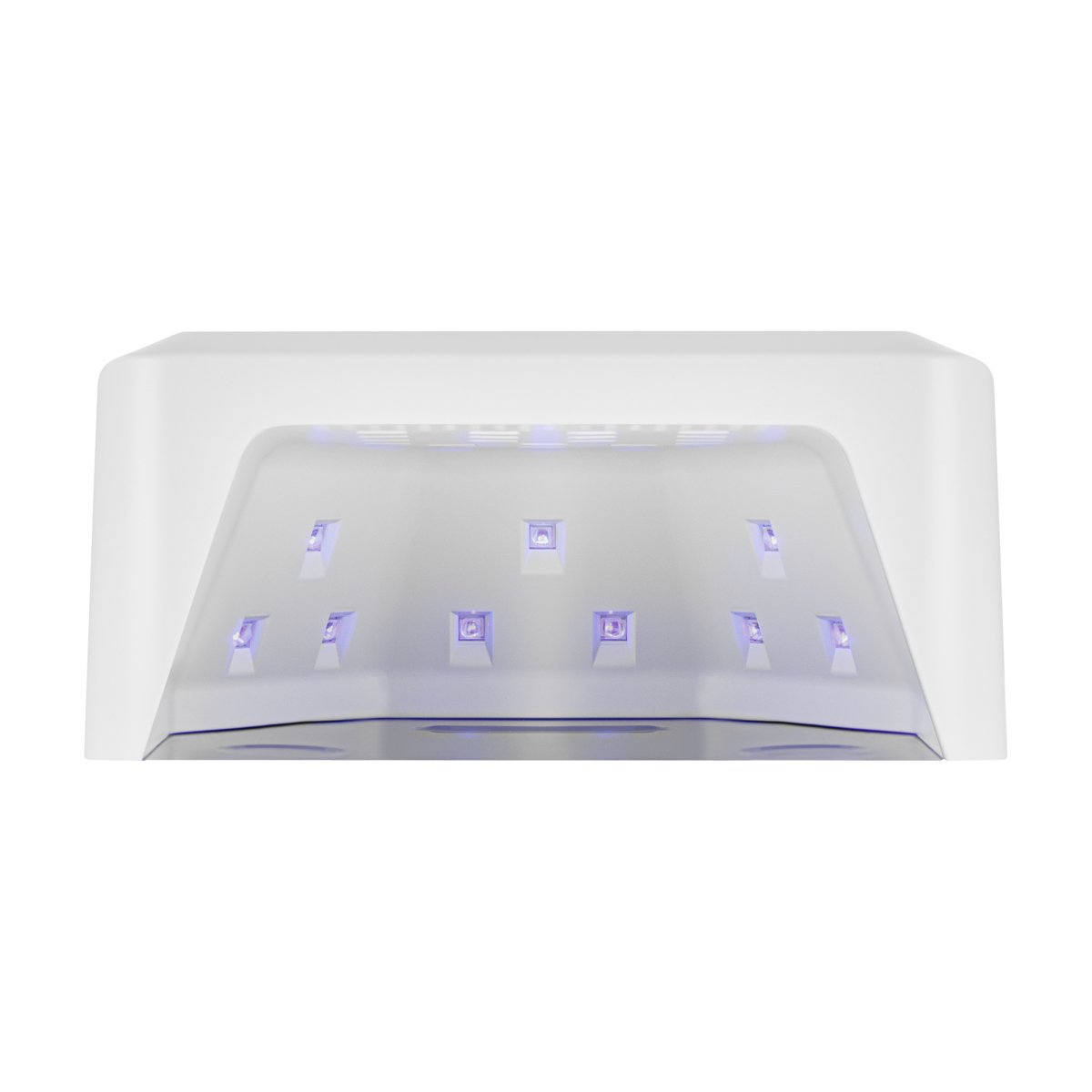 Η λάμπα χωρίς σκίαση με 39 LED πολυμερίζει ομοιόμορφα τα τζελ και τα υβριδικά βερνίκια. Ο σχεδιασμός με κλειστό θάλαμο και ο κατοπτρικός πυθμένας που αντανακλά το φως καθιστούν τη διαδικασία πολυμερισμού ταχύτερη και πιο ακριβή , ακόμη και σε δυσπρόσιτα σημεία της πλάκας του νυχιού. Η τεχνολογία διπλού LED εκπέμπει φως σε δύο μήκη κύματος, γεγονός που μειώνει σημαντικά την καταπόνηση των ματιών και αυξάνει την άνεση .