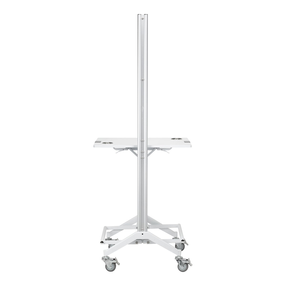 Ένα πρακτικό πτυσσόμενο ράφι σε ύψος 90 cm είναι ένα από τα κύρια πλεονεκτήματα της κονσόλας MI-03, η οποία εξοικονομεί χώρο ενώ παράλληλα προσφέρει λειτουργικό χώρο αποθήκευσης. Επιπλέον, ο σχεδιασμός διπλής όψης και οι ροδάκια που κλειδώνουν παρέχουν κινητικότητα και ευκολία μετακίνησης της κονσόλας. Οι οπές στο ράφι χρησιμεύουν ως βάση για πιστολάκι μαλλιών, καθιστώντας την ακόμα πιο πρακτική και προσαρμοσμένη στις ανάγκες των επαγγελματιών κομμωτών.