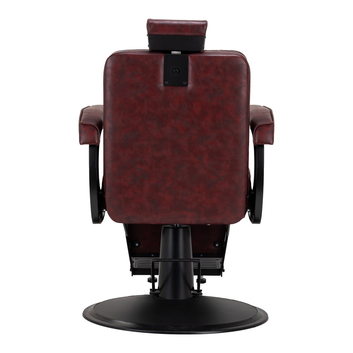 Η συμπαγής στρογγυλή κατασκευή της βάσης της καρέκλας εξασφαλίζει σταθερότητα και εξαιρετική άνεση στον χρήστη . Το γέμισμα του καθίσματος, κατασκευασμένο από αφρό ανθεκτικό στην παραμόρφωση, και η ταπετσαρία από απαλό συνθετικό δέρμα με ματ φινίρισμα εξασφαλίζουν μακροχρόνια ανθεκτικότητα και άνεση κατά τη διάρκεια παρατεταμένης χρήσης. Οι κομψές ραφές στην ταπετσαρία προσθέτουν χαρακτήρα, θυμίζοντας εμπνεύσεις σχεδιασμού αυτοκινήτων που ενισχύουν την κομψή της εμφάνιση . Αυτό το χαρακτηριστικό καθιστά επίσης την καρέκλα ανθεκτική στην υγρασία, ανθεκτική και εύκολη στο καθάρισμα . Η ταπετσαρία σε μπορντό αποχρώσεις δίνει στην καρέκλα έναν μοναδικό χαρακτήρα και το μινιμαλιστικό της στυλ της επιτρέπει να συνδυάζεται άψογα με τη διακόσμηση οποιουδήποτε κουρείου.