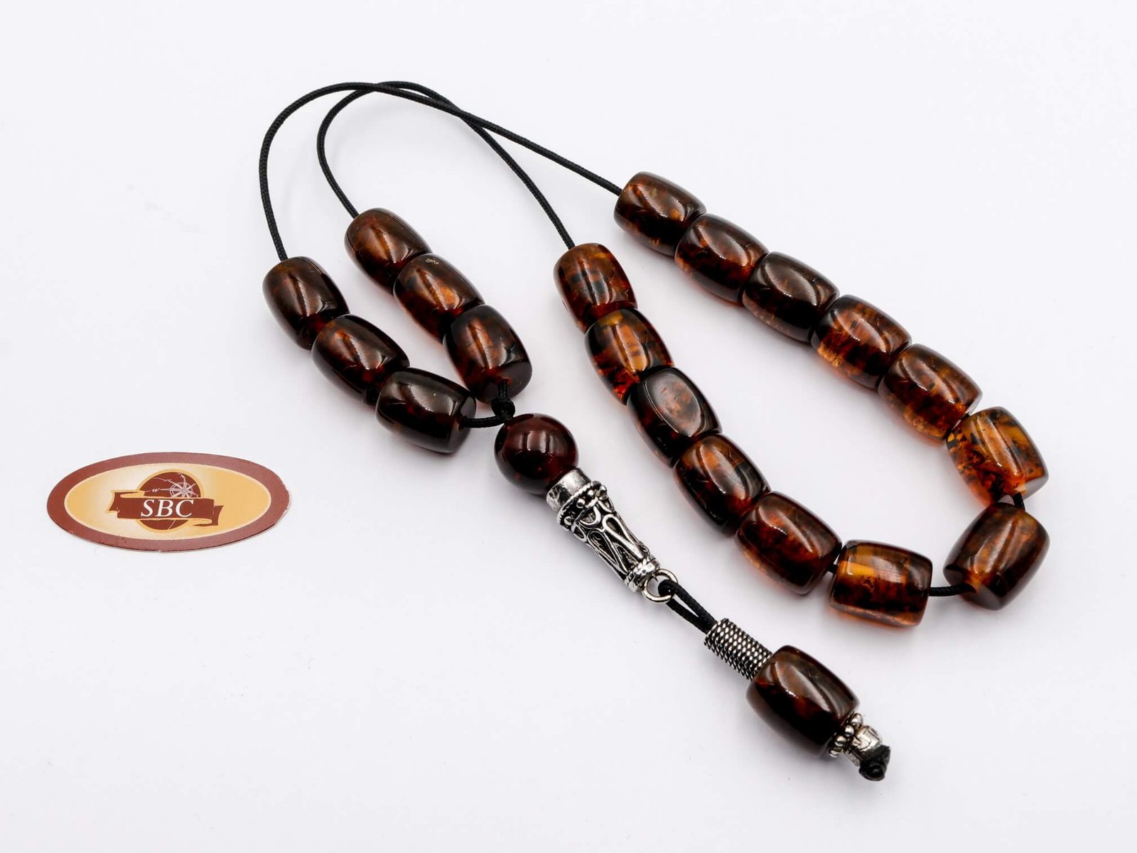 Κομπολόι Κεχριμπάρι Με Ασημένια Στοιχεία Νο.K700