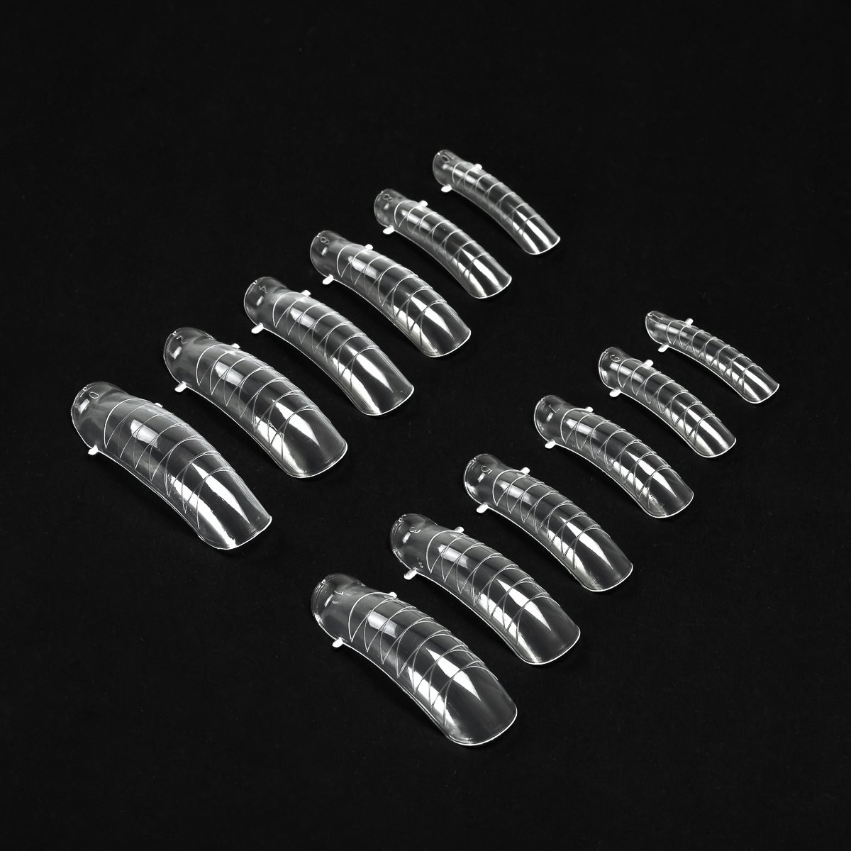 Οι τετράγωνες διπλές φόρμες διακρίνονται για την εξαιρετική τους ευελιξία και ανθεκτικότητα , που επιτρέπουν την άνετη εργασία χωρίς να ανησυχείτε για τυχόν ζημιά. Οι βοηθητικές γραμμές διευκολύνουν την απόδοση του επιλεγμένου μήκους στα νύχια σας, ενώ το διαφανές υλικό εξασφαλίζει αποτελεσματικό πολυμερισμό σε λάμπα UV/LED. Τα 12 μεγέθη επιτρέπουν την τέλεια εφαρμογή της διπλής φόρμας στην φυσική πλάκα του νυχιού, γεγονός που διευκολύνει την επίτευξη ενός τέλειου αποτελέσματος .