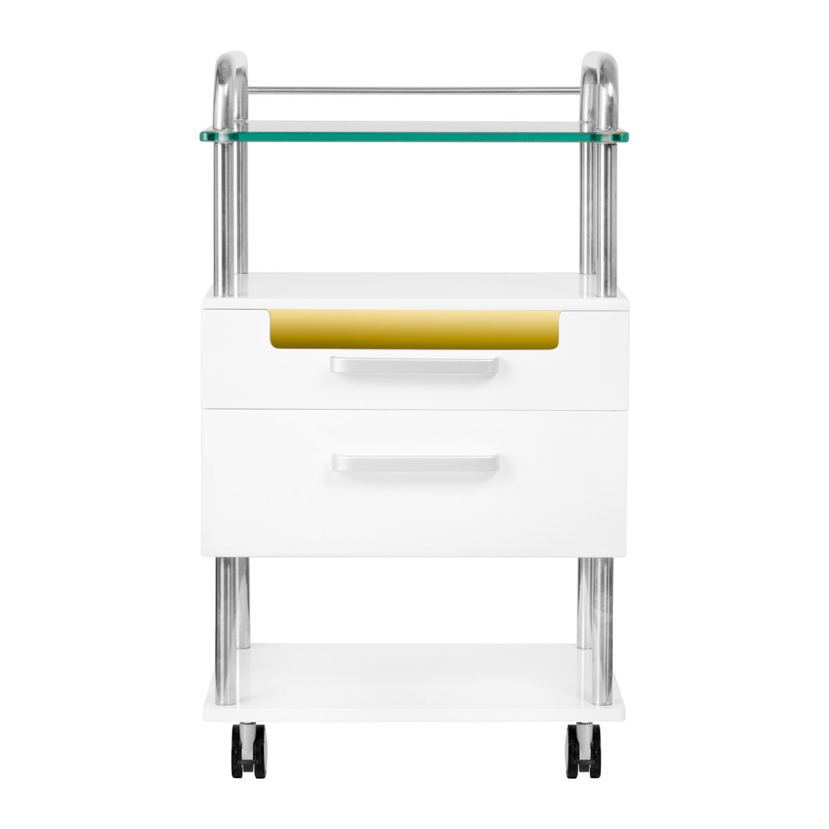 Αυτή η υψηλής ποιότητας βάση ποδιατρικής είναι ένα λειτουργικό έπιπλο αισθητικής με ρόδες. Η κινητικότητά της σάς επιτρέπει να τη μεταφέρετε σε άλλα δωμάτια θεραπείας. Διαθέτει γυάλινη επιφάνεια εργασίας, συρτάρια για εργαλεία και αξεσουάρ και ένα ράφι για φρέζα ποδιατρικής ή άλλη συσκευή. Το ένα συρτάρι διαθέτει ενσωματωμένη λάμπα UV-C για βελτιωμένη στειρότητα των εργαλείων και των αξεσουάρ.