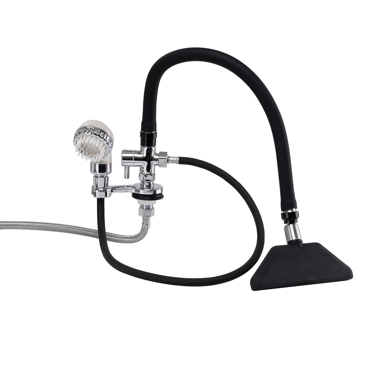 Η βρύση καταρράκτη με μίξερ, σχεδιασμένη για πλυντήρια κομμωτηρίων, αποτελεί αναπόσπαστο κομμάτι του επαγγελματικού εξοπλισμού κομμωτηρίου. Διευκολύνει την εύκολη σύνδεση του νερού στο πλυντήριο αυτοκινήτων και παρέχει άνεση τόσο στον κομμωτή όσο και στον πελάτη. Χάρη στους ενσωματωμένους σωλήνες σύνδεσης από πλεγμένο χάλυβα, η βρύση χαρακτηρίζεται από υψηλή ανθεκτικότητα και αντοχή στην τριβή .